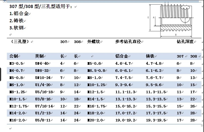 3、 是增加低强度材料螺纹部机械强度,无需螺纹加工的连结零件